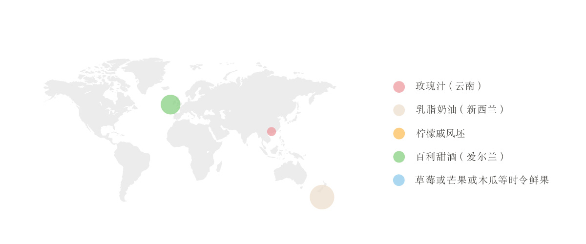 爱尔兰百利甜酒/新西兰奶油/云南玫瑰甘露/