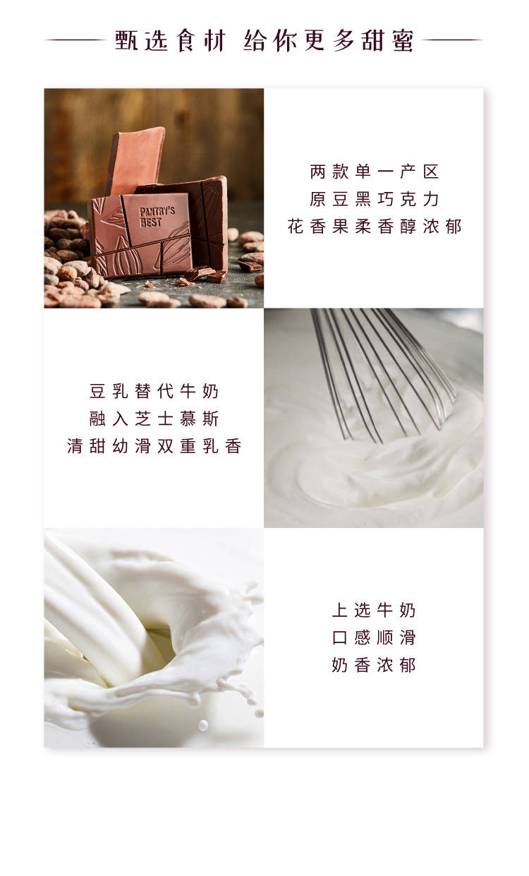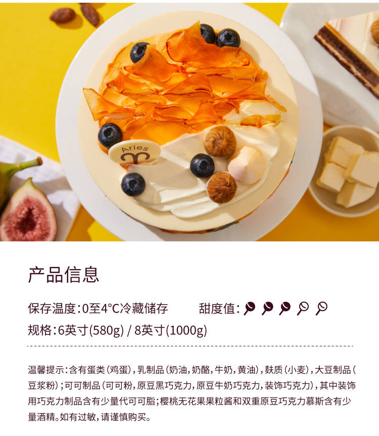 立减8元过敏原:含有蛋类(鸡蛋),乳制品(奶油,奶酪,牛奶,黄 油),麸质(小麦),大豆制品(豆浆粉)。 提示:本产品含有可可制品(可可粉,原豆黑巧克力,原豆牛奶 巧克力,装饰巧克力),其中装饰用巧克力制品含有少量代可可 脂;樱桃无花果果粒酱和双重原豆巧克力慕斯含有少量酒精。