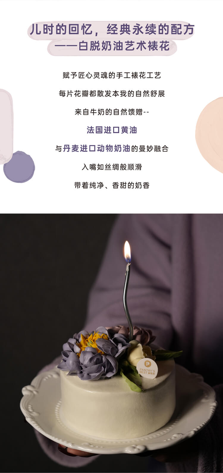 [经典白脱奶油] 复古经典白脱奶油,手工裱花工艺,去苦增香日式焙茶