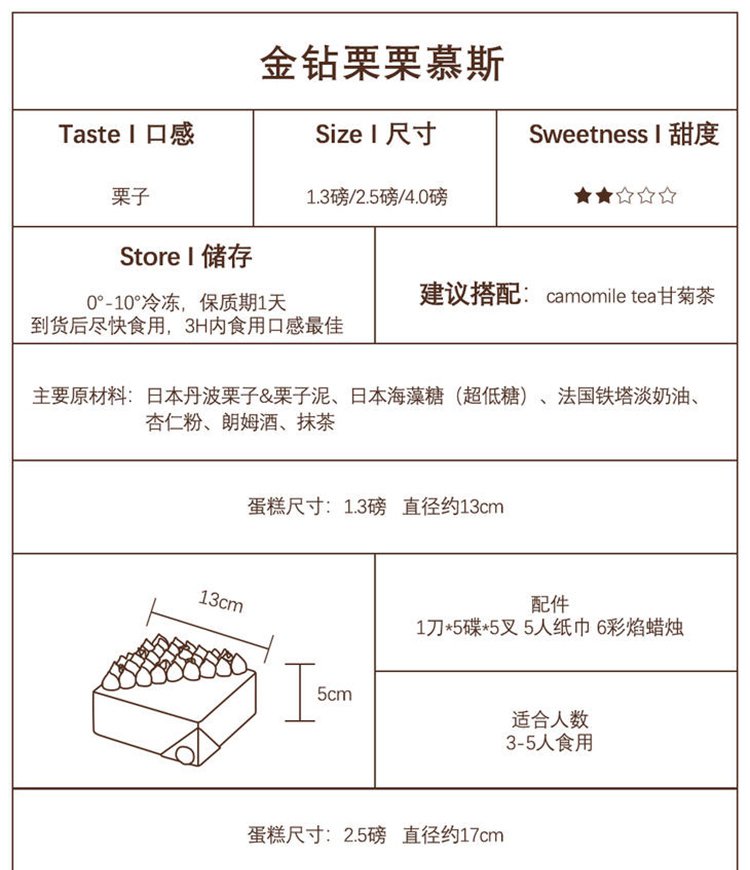 首页 > 黑池蛋糕 > 金钻栗栗(1.3磅)