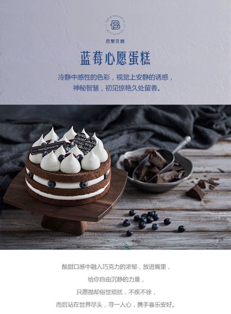 巴黎贝甜主厨用爱心做的蛋糕,甜甜的蛋糕坯里夹了新鲜蓝莓奶油,让您美好的时光更加浪漫。