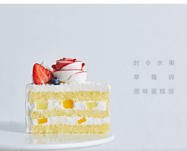 鸡蛋、小麦粉、原味夹心坯子、时令水果(樱桃、红提、青提、椰果、橙子、芒果、西柚、菠萝、黄桃、草莓、蓝莓,随季节变化)