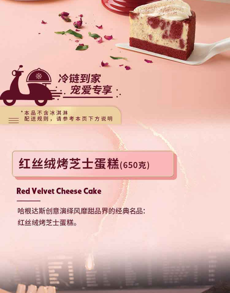 首页 > 哈根达斯蛋糕 > 哈根达斯红丝绒 烤芝士蛋糕650g