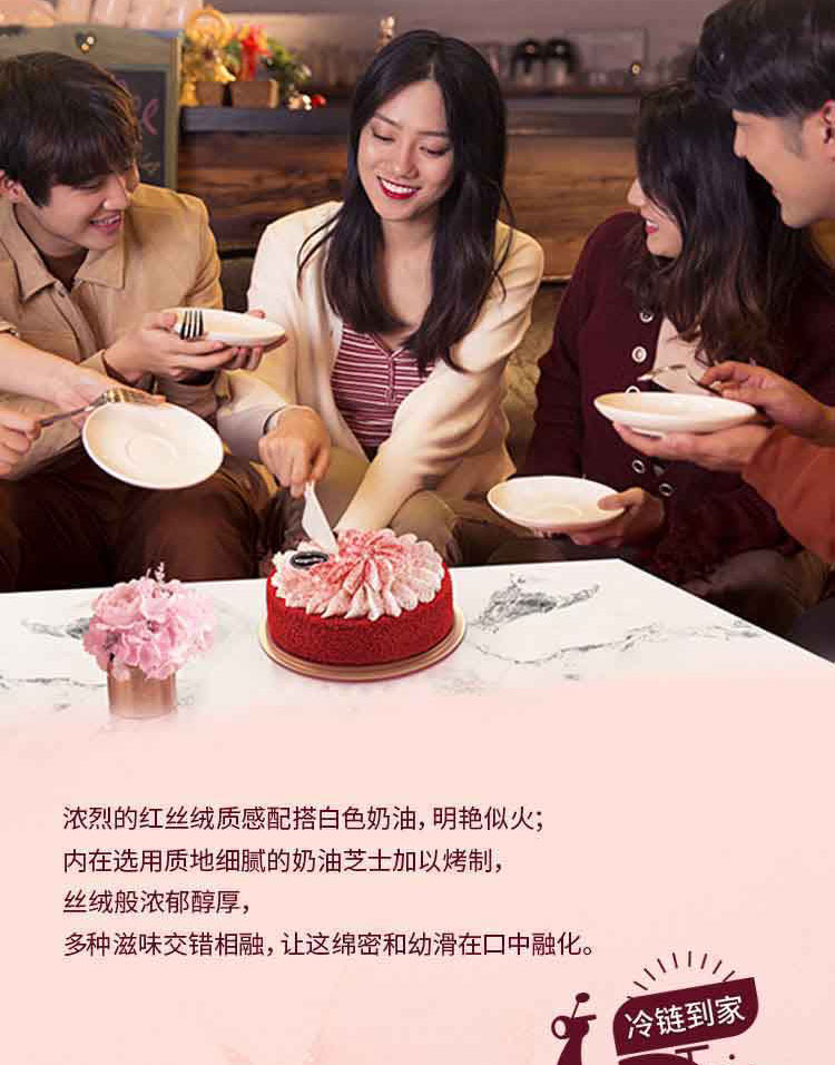 哈根达斯创意演绎风靡甜品界的经典名品:红丝绒烤芝士蛋糕。浓烈的红丝绒质感配搭白色奶油,明艳似火;内在选用质地细腻的奶油芝士加以烤制,丝绒般浓郁醇厚,多种滋味交错相融,让这绵密和幼滑在口中融化。