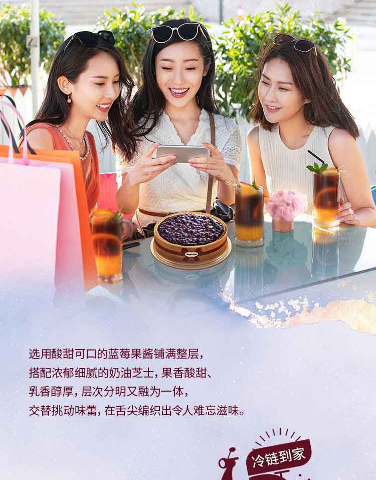 经典芝士蛋糕--蓝莓与芝士的奇妙碰撞。选用酸甜可口的蓝莓果酱铺满整层,搭配浓郁细腻的奶油芝士,果香酸甜、乳香醇厚,层次分明又融为一体,交替挑动味蕾,在舌尖编织出令人难忘滋味。