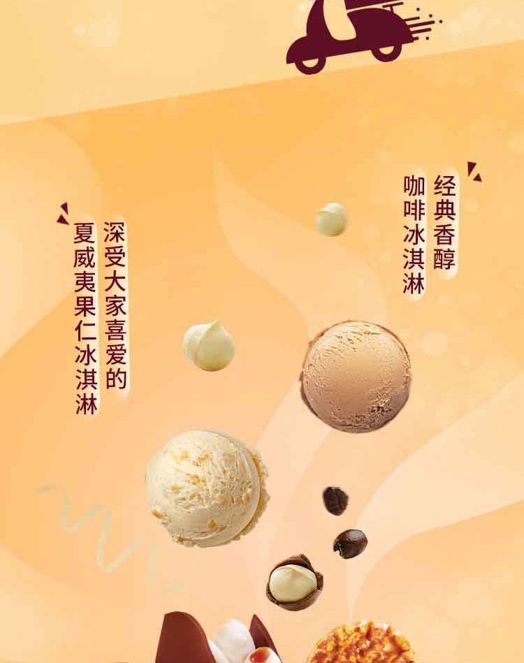 挑选深受大家喜爱的夏威夷果仁冰淇淋搭配经典香醇咖啡冰淇淋,坚果香、咖啡香和冰淇淋的乳香层层交融,注入丰盈质感与多重口感,缔造“啡”比寻常的美妙感受。