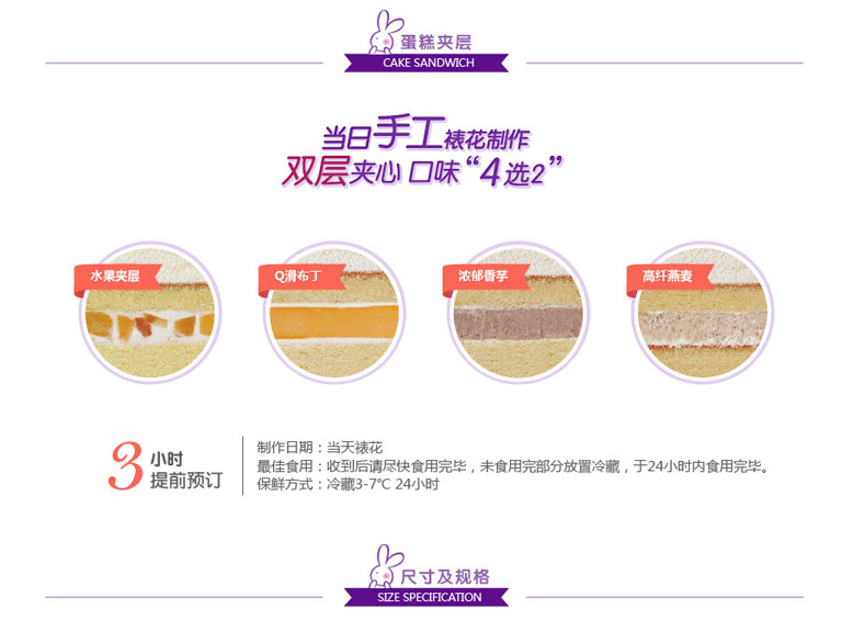 鲜花蛋糕都是配送当日新鲜材料制作而成,确保新鲜度,敬请放心订购!