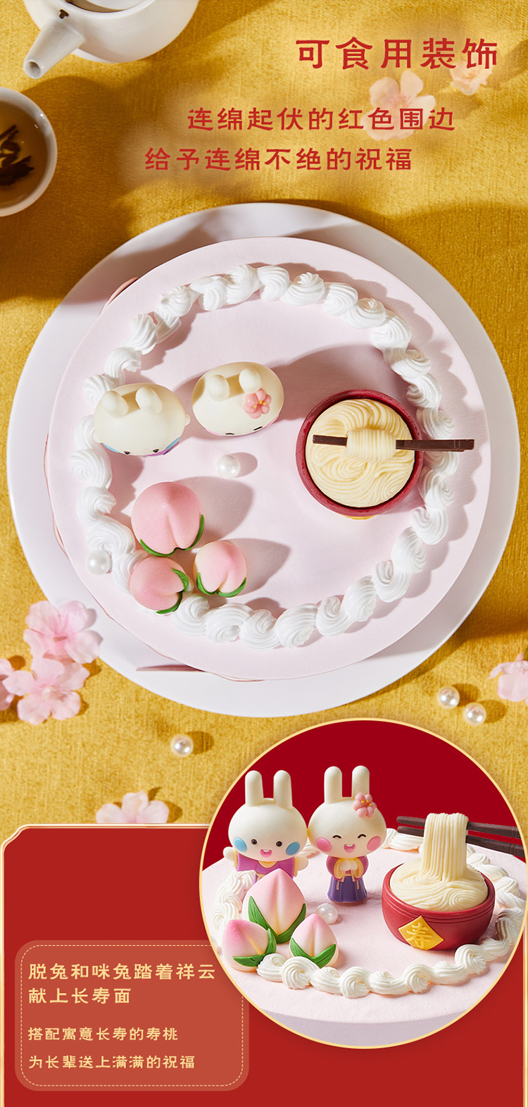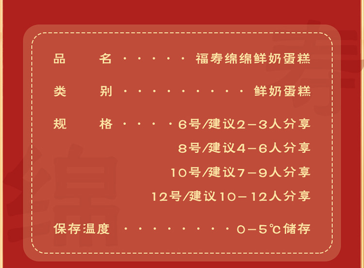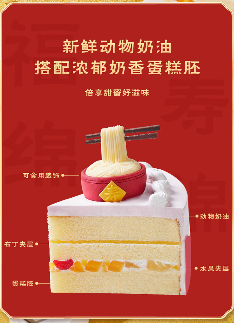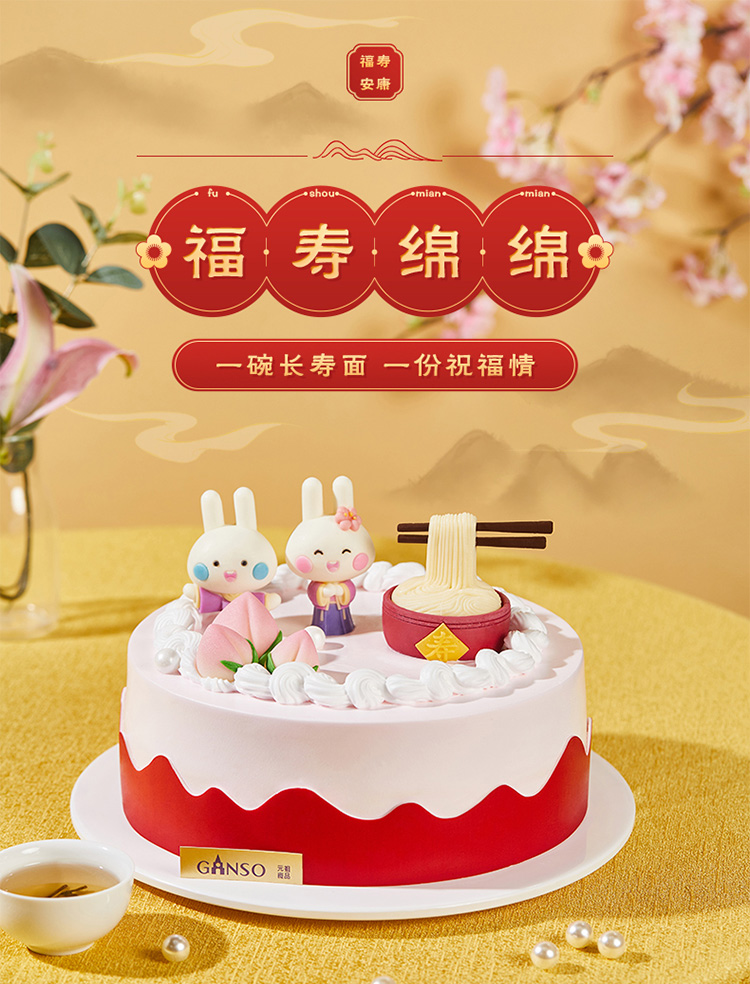 福寿绵绵 鲜奶蛋糕6号无兔子装饰