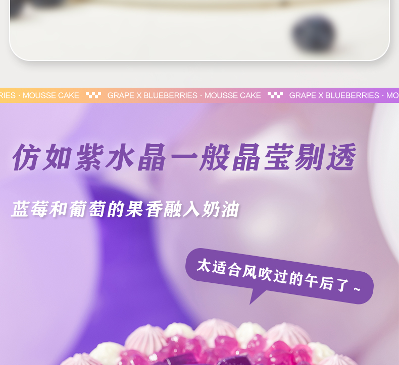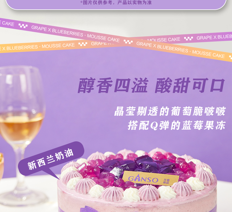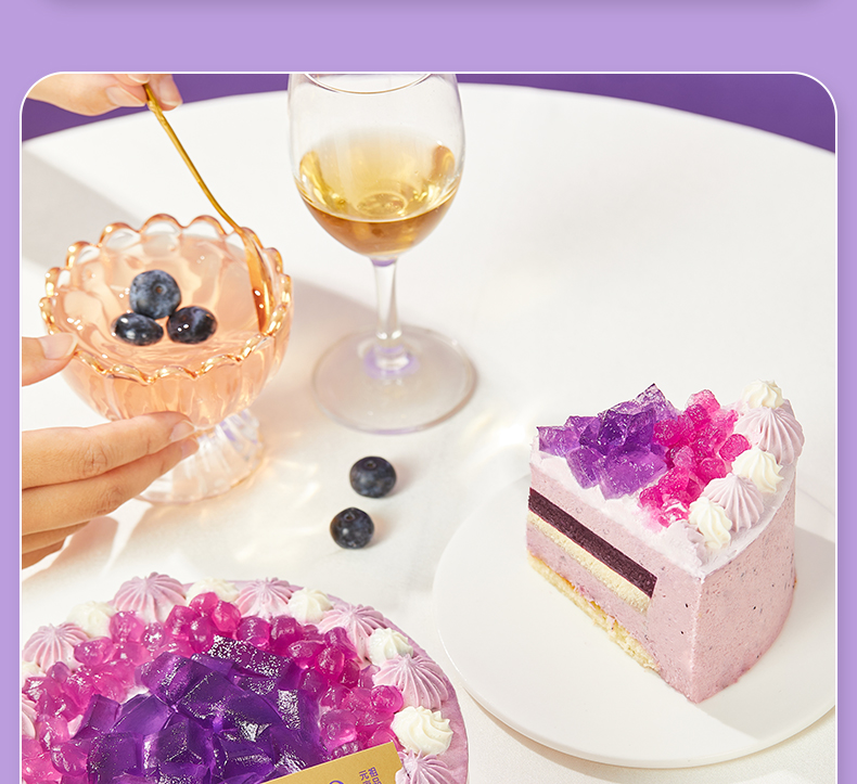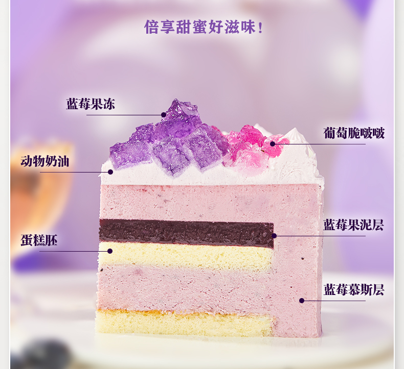 立减8元蓝莓果冻,葡萄脆波波,蓝莓果泥,蓝莓慕斯,动物奶油,蛋糕胚