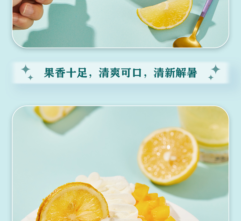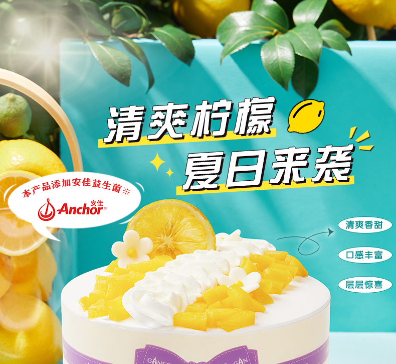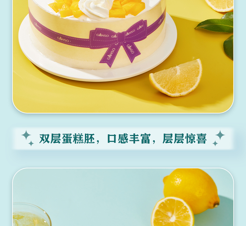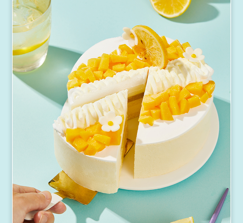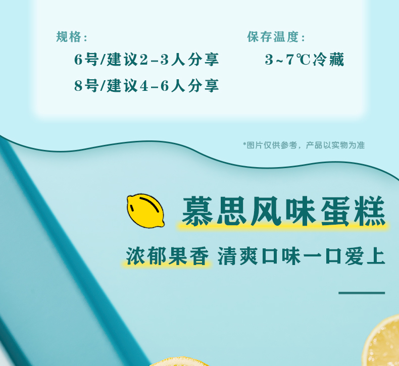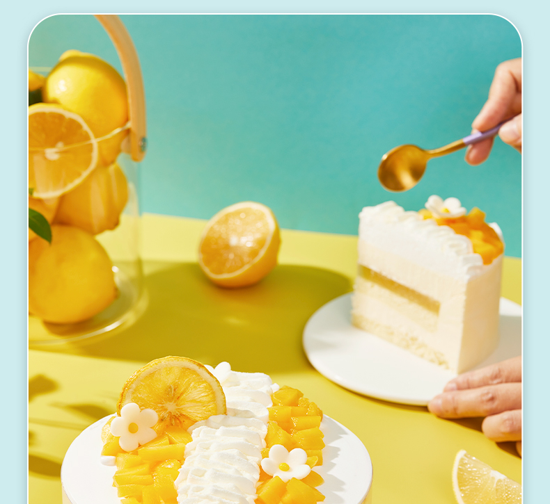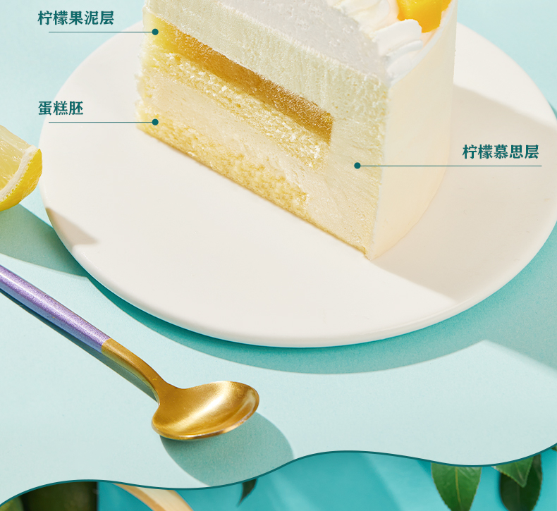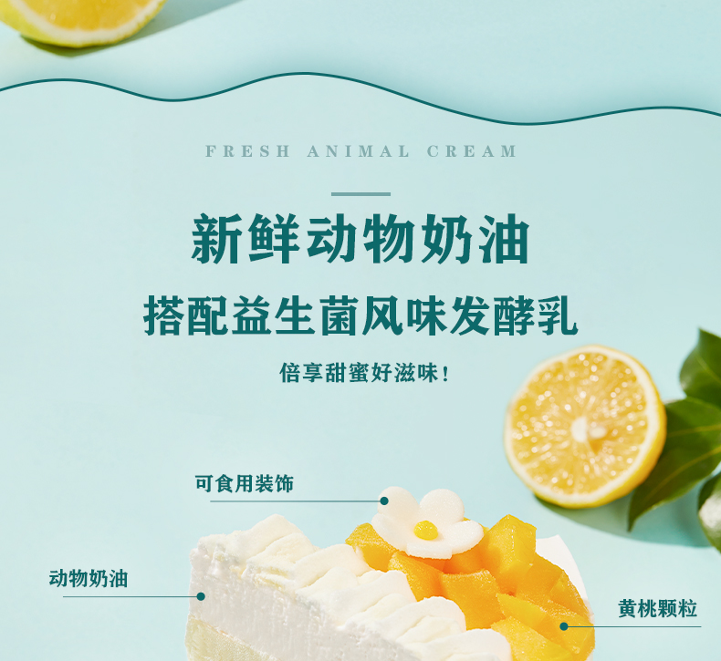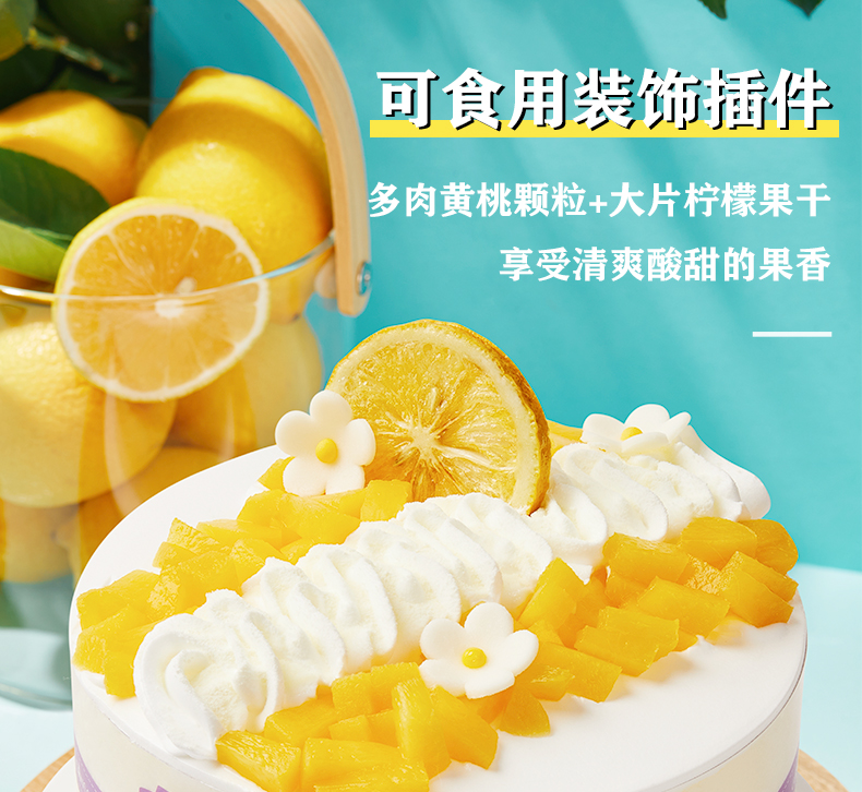 立减8元动物奶油、黄桃颗粒、柠檬果泥层、蛋糕胚、柠檬慕思层
