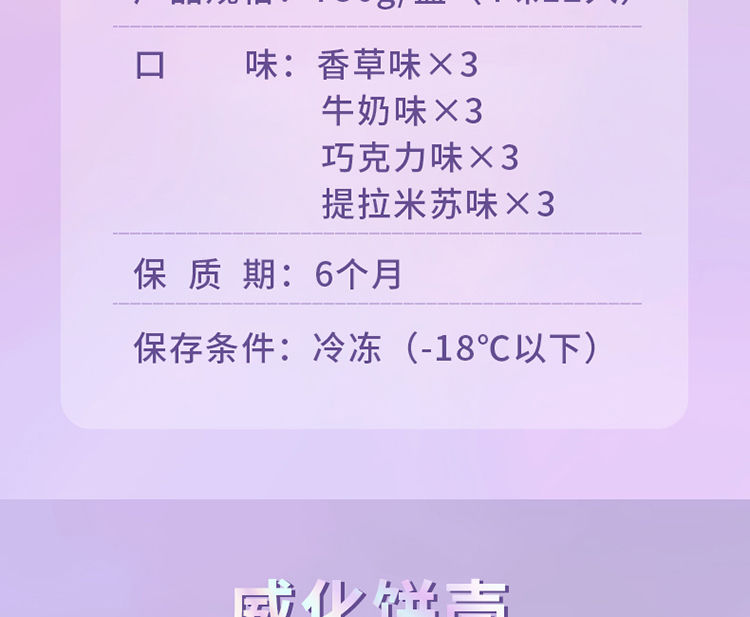 口味:香草味*3,牛奶味*3,巧克力味*3,提拉米苏味*3