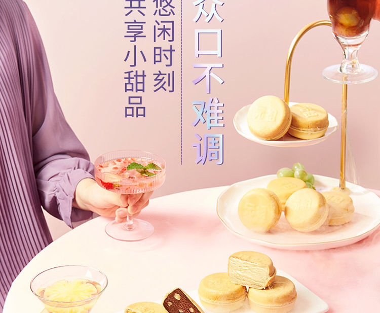 绚丽绽放着的糖花上调皮的巧克力蝴蝶跃于花瓣之上。适合与绿茶、可乐等饮料搭配食用。