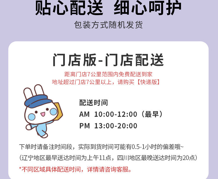门店15公里内线下配送,超15公里外顺丰快递配送