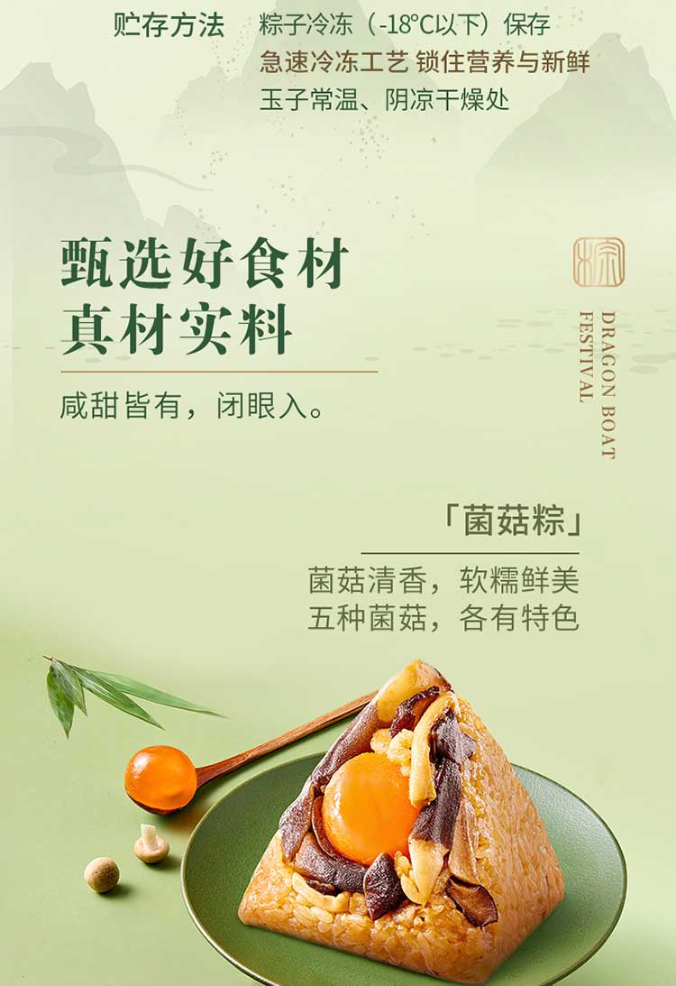 立减8元产品:紫米八宝粽*3、菌菇棕*3、单黄玉子*6
