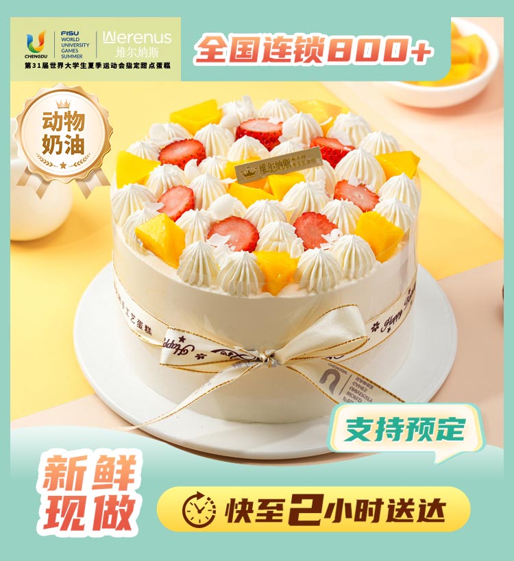 维尔纳斯 鲜果岛屿动物奶油生日蛋糕/6寸