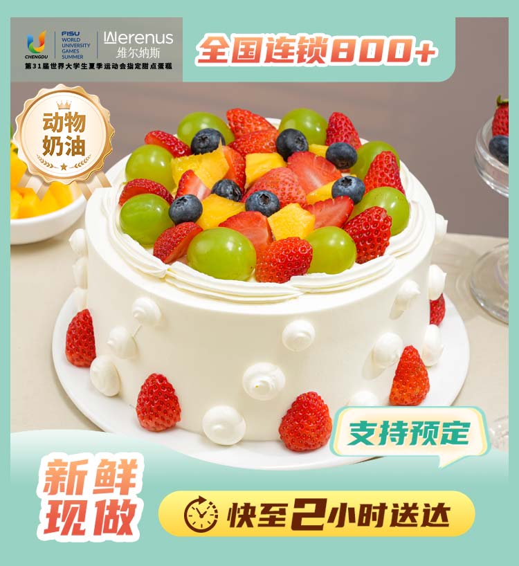 维尔纳斯 水果多巴胺动物奶油生日蛋糕/8英寸