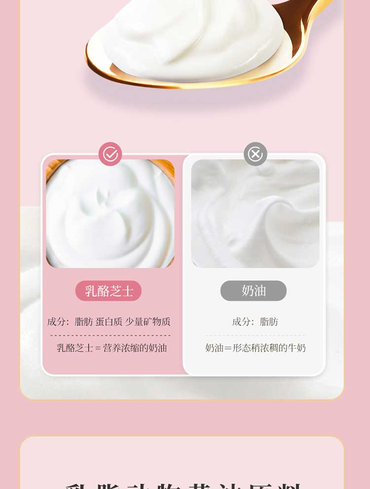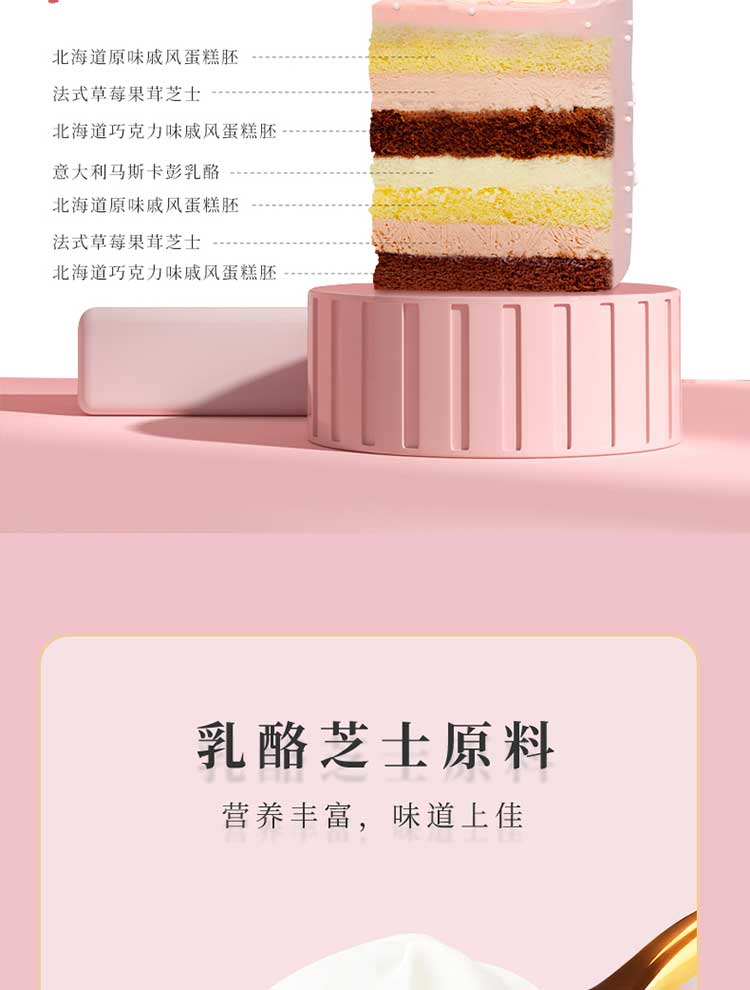 新西兰乳脂黄油、法式草莓果茸芝士、北海道巧克力戚风胚、意大利马斯卡彭乳酪