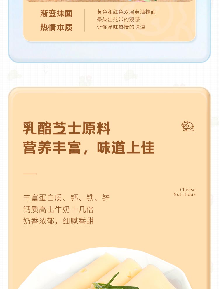 新西兰乳脂黄油、法式草莓果茸芝士、北海道巧克力戚风胚、意大利马斯卡彭乳酪