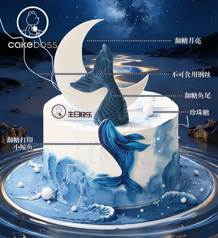 首页 > cakeboss蛋糕 > CAKEBOSS双鱼座“月落鲸海”水果奶油蛋糕/4寸