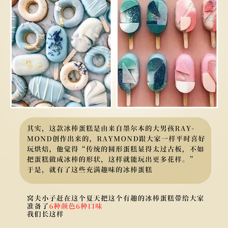 [有趣的冰棒蛋糕] 草莓慕斯、红丝绒慕斯、芒果慕斯、提拉米苏、益生菌牛油果慕斯、榛子巧克力慕斯