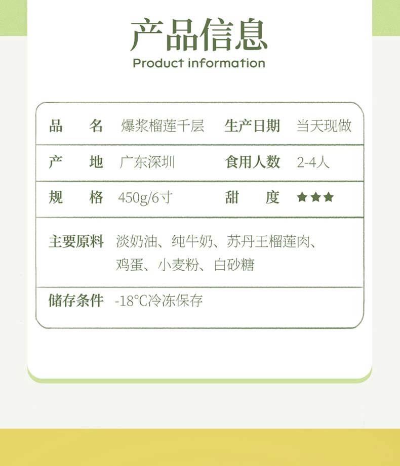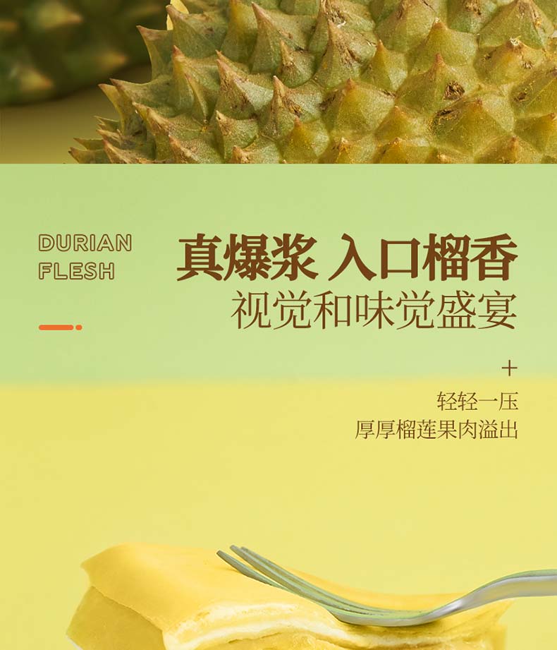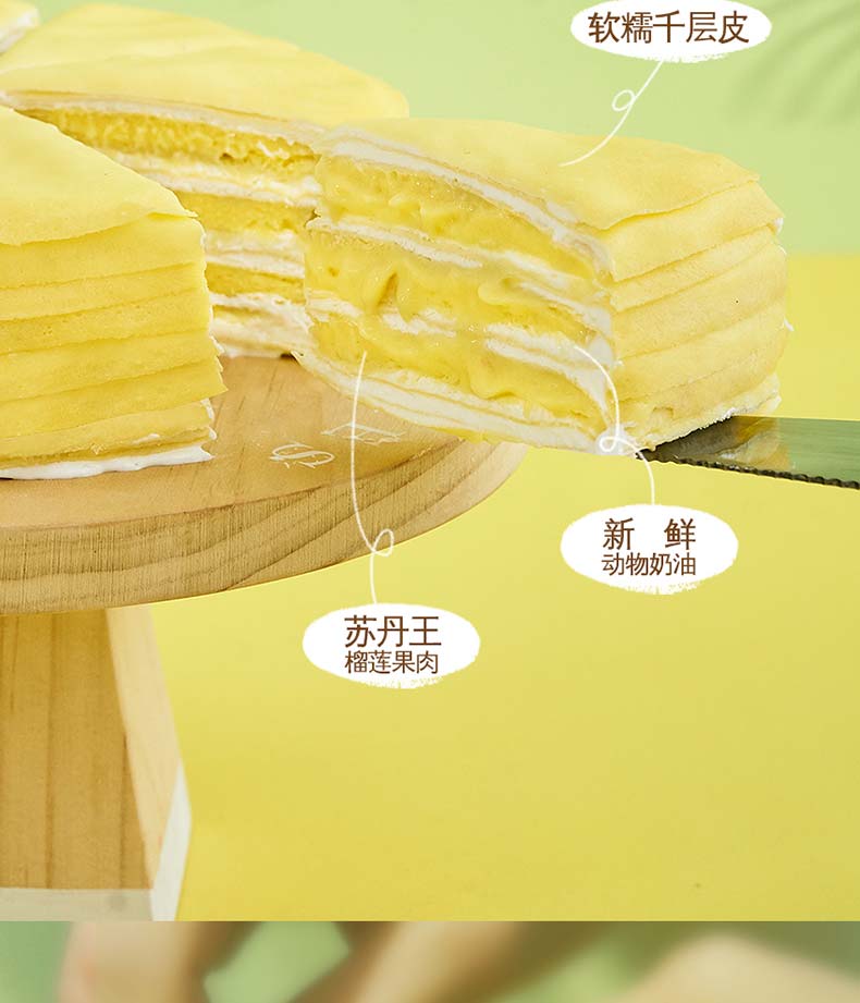 首页 > 四季榴莲蛋糕 > 爆浆榴莲千层/450g