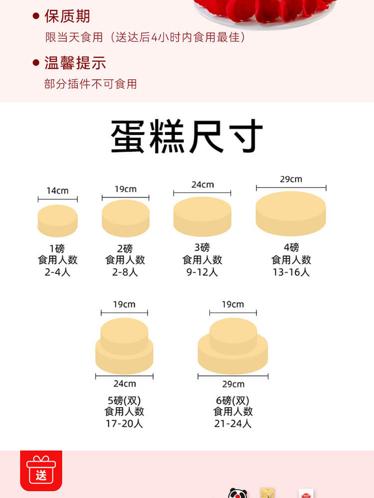 鲜花蛋糕都是配送当日新鲜材料制作而成,确保新鲜度,敬请放心订购!
