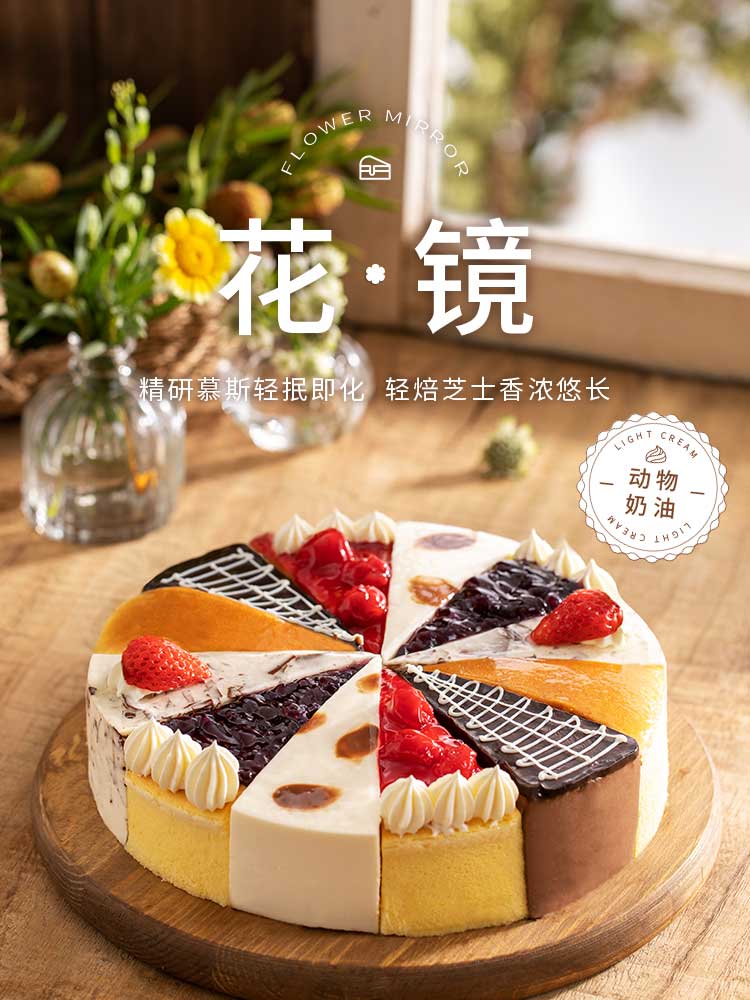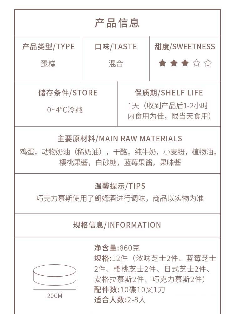 花镜 芝士慕斯蛋糕/12块(无贺卡、巧克力牌、蜡烛、生日帽)