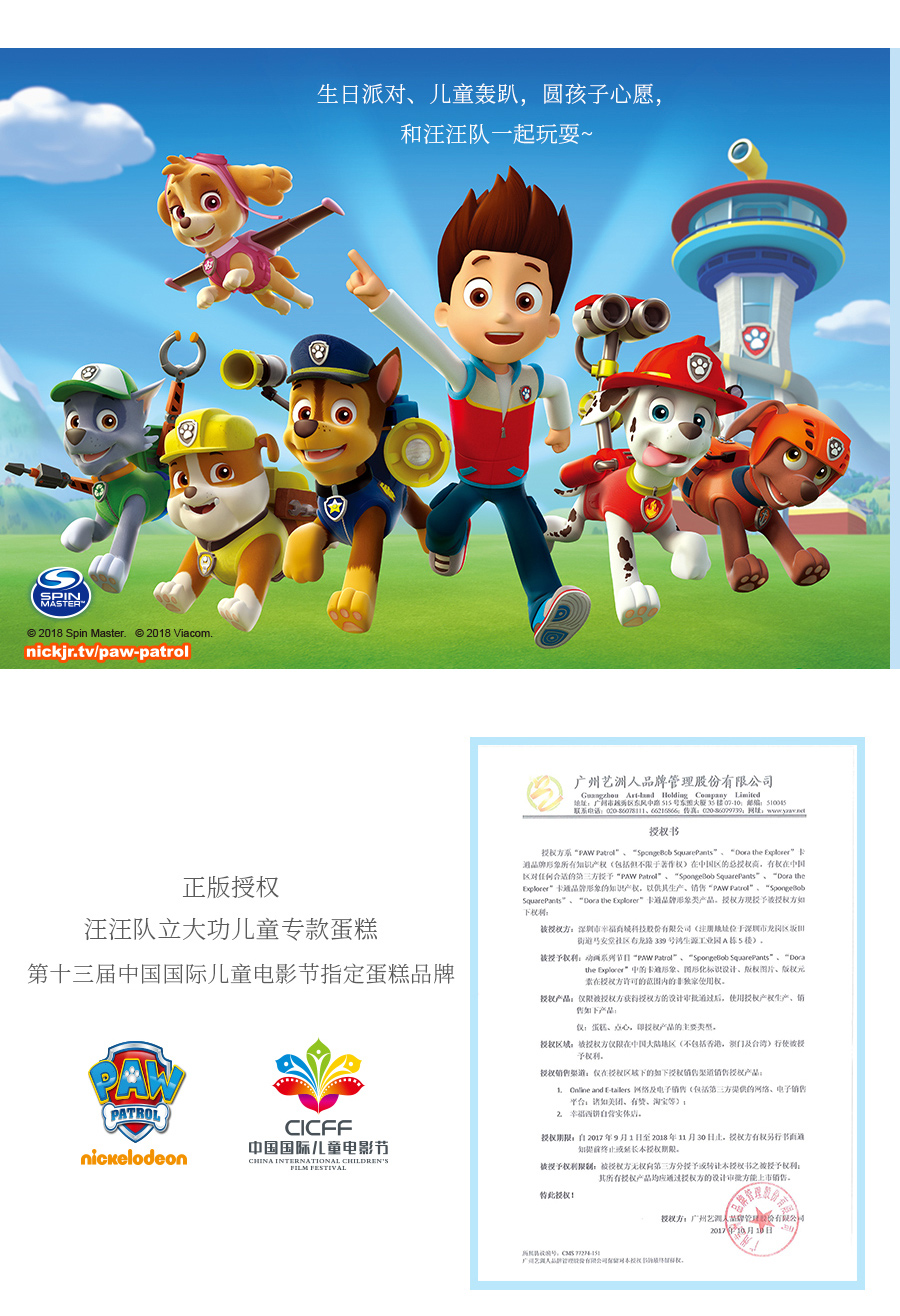 首页 > 幸福西饼蛋糕 > 汪汪队之天天/550g