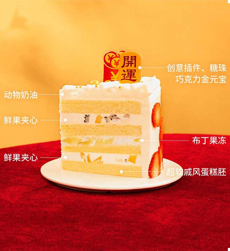 立减8元稀奶油,鸡蛋,草莓,果冻,食用油脂制品,哈密瓜,芒果,火龙果,白砂糖,植物油,饮用水,小麦粉,食用玉米淀粉,复合调味料,糖珠(糖果),代可可脂巧克力制品,代可可脂巧克力,麦芽糊精,鸡蛋蛋白粉,海藻糖,谷朊粉,食品用香精,食用盐。