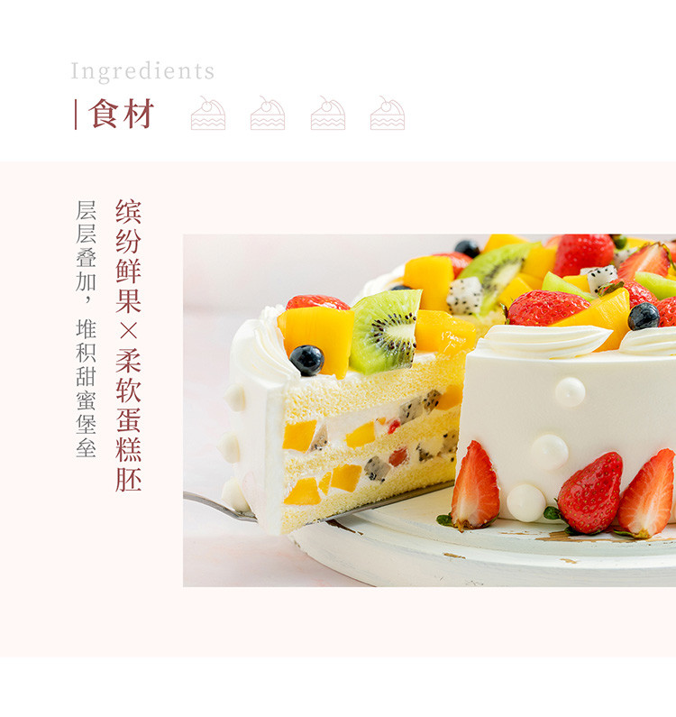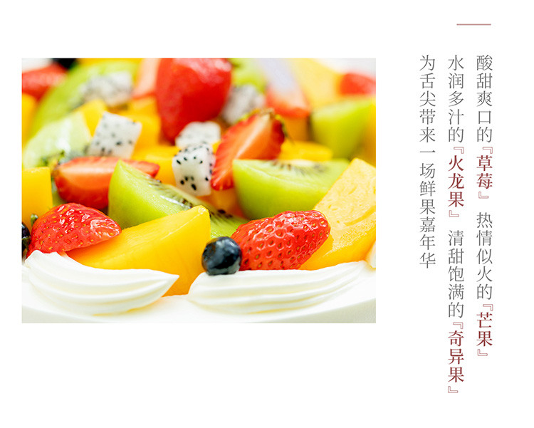 芒果、稀奶油、鸡蛋、草莓、奇异果、火龙果、白砂糖、小麦粉、水、玉米淀粉、食用植物油、果味酱、蓝莓、食用盐