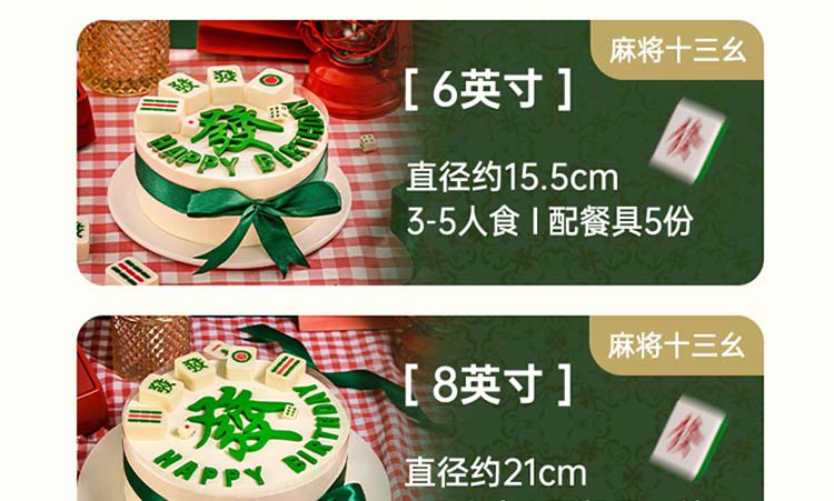 首页 > FALANCCAKE蛋糕 > 麻将复古男女士十三幺生日蛋糕/8寸