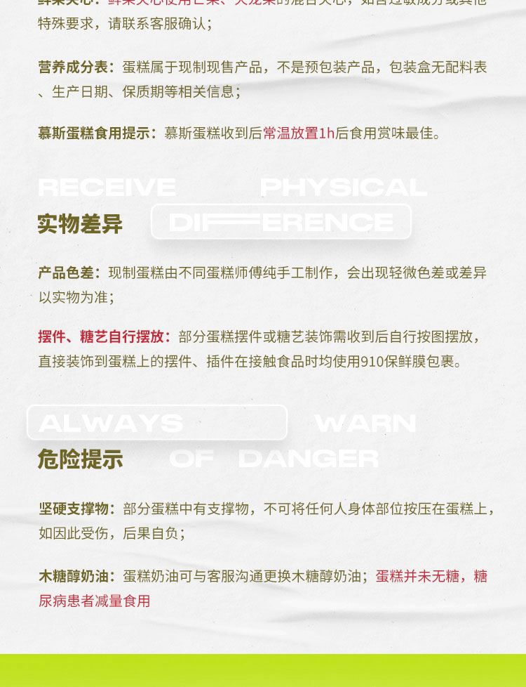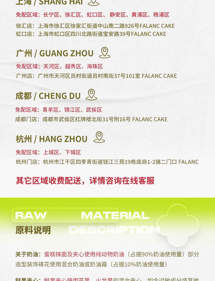 鲜花蛋糕都是配送当日新鲜材料制作而成,确保新鲜度,敬请放心订购!