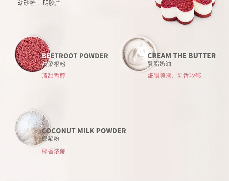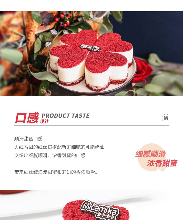 口味:香甜的红丝绒融合细腻的鲜奶油,绽放出丝滑甜蜜口感。