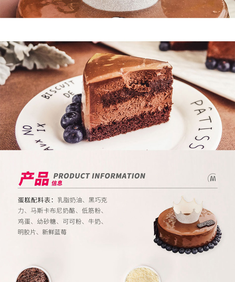 立减8元巧克力酱(比利时)、可可粉(法国)、Mascarpone cheese(意大利)、乳脂奶油(新西兰)、牛奶(新西兰)、蓝莓(美国)、低筋粉(丹麦)、鸡蛋(中国)、幼砂糖(韩国)