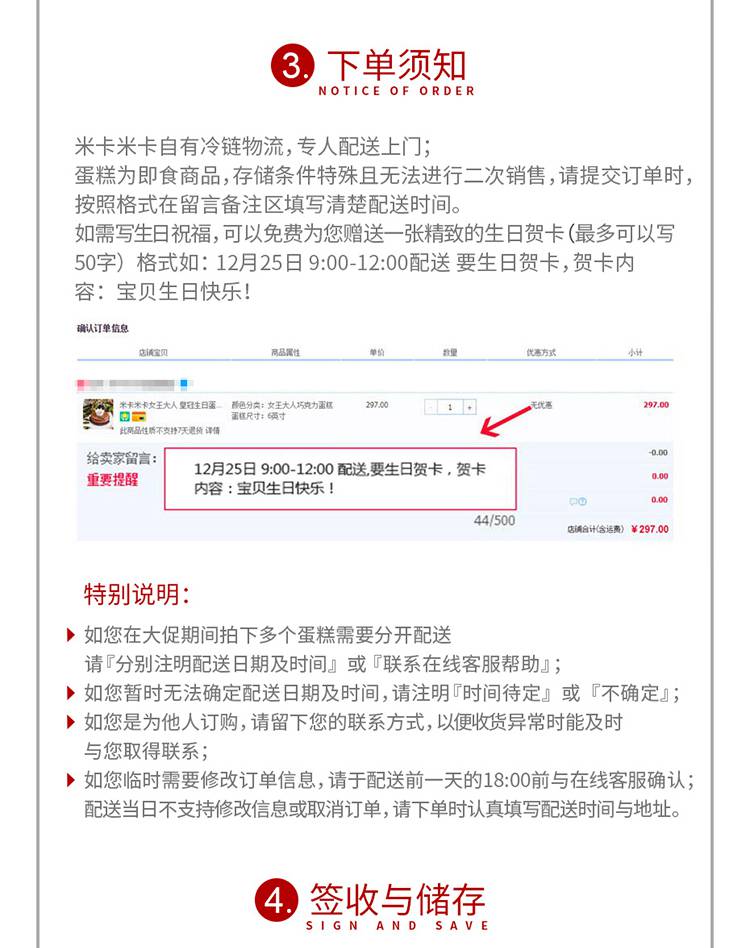 3.提前订好,我们会记住您选择的配送日期,按指定日期准时送达,即使忙碌,也保证您不会错过任何一个重要的日子!