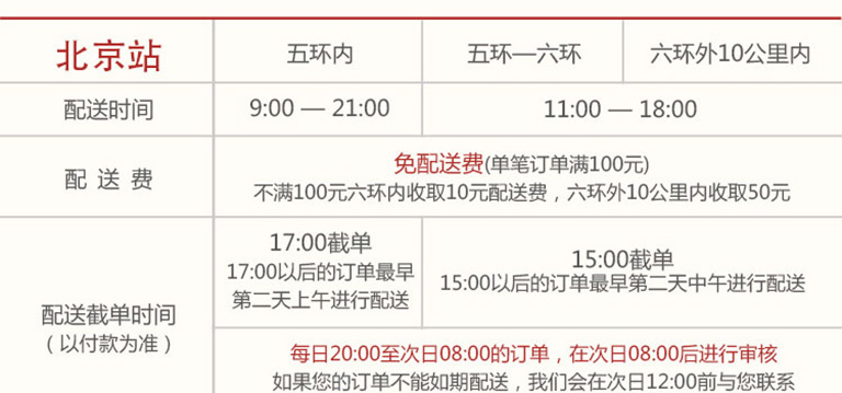 北京五环内免配送费