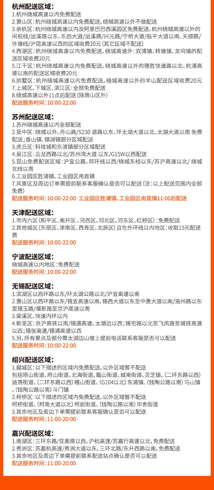 提交订单时您可以选择上午(8:30-12:00)、下午(12:00-18:00)、晚上(18:00-21:00)三个时段;如果对配送时间点有特别需求,您可以选择定时服务。特别提示:如果下单时间距离所选时段少于3小时,您所选时段无法满足的情况下,将尽量在您付款后3小时内送到。