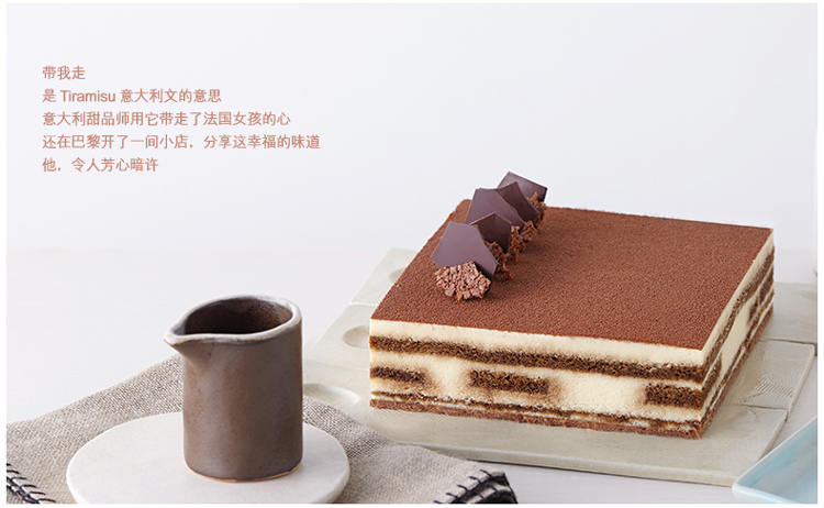 带我走。是Tiramisu意大利文的意思。意大利甜品师用它带走了法国女孩的心,还在巴黎开了一间小店,分享这幸福的味道。他,令人芳心暗许。