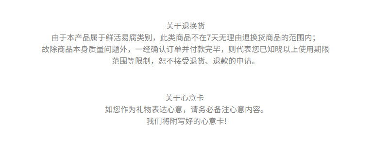 我们一直致力于持续提升服务水平,追求零客诉,我们为客户提供完善的售后服务。如果出现误单、花材不符、贺卡有误或者其他任何您不满意的情况,欢迎您第一时间与我们联系,我们将尽快为您做出回复和处理。200%退赔承诺,即如果漏单未送,订单款项全额退还给您,原订单商品同时再免费配送一次, 详见售后服务条款>>