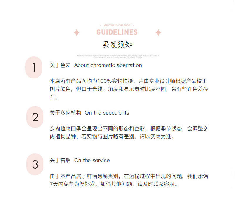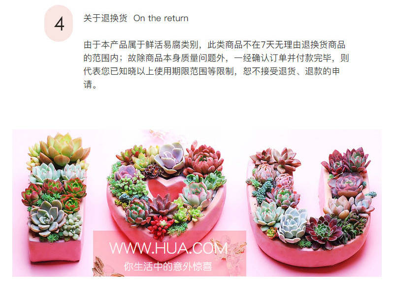 我们一直致力于持续提升服务水平,追求零客诉,我们为客户提供完善的售后服务。如果出现误单、花材不符、贺卡有误或者其他任何您不满意的情况,欢迎您第一时间与我们联系,我们将尽快为您做出回复和处理。200%退赔承诺,即如果漏单未送,订单款项全额退还给您,原订单商品同时再免费配送一次, 详见售后服务条款>>