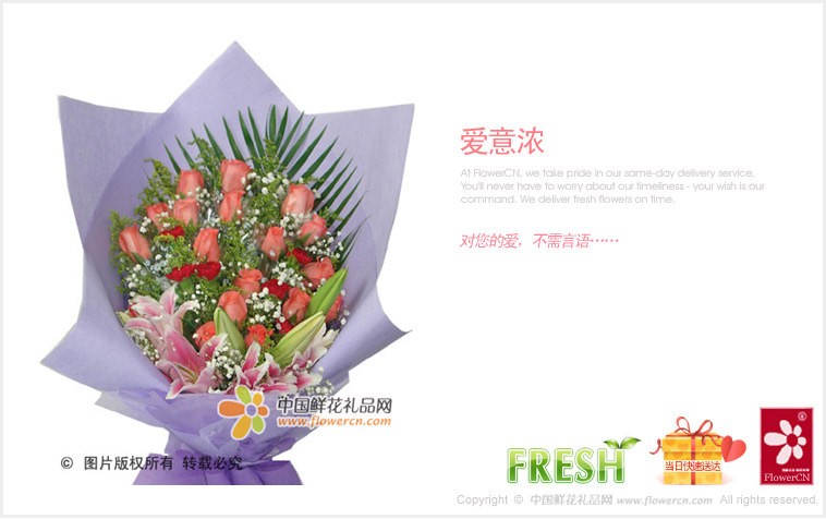 鲜花蛋糕都是配送当日新鲜材料制作而成,确保新鲜度,敬请放心订购!