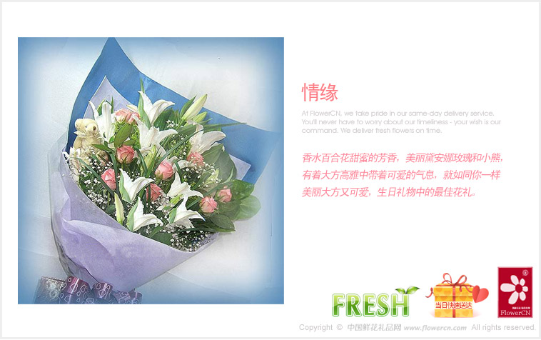 鲜花蛋糕都是配送当日新鲜材料制作而成,确保新鲜度,敬请放心订购!