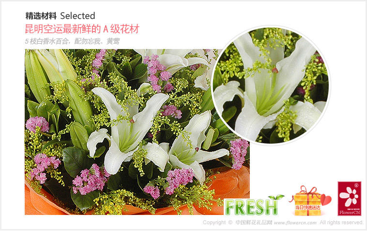 鲜花蛋糕都是配送当日新鲜材料制作而成,确保新鲜度,敬请放心订购!
