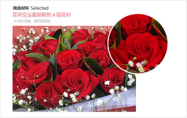 33枝红玫瑰,满天星围绕