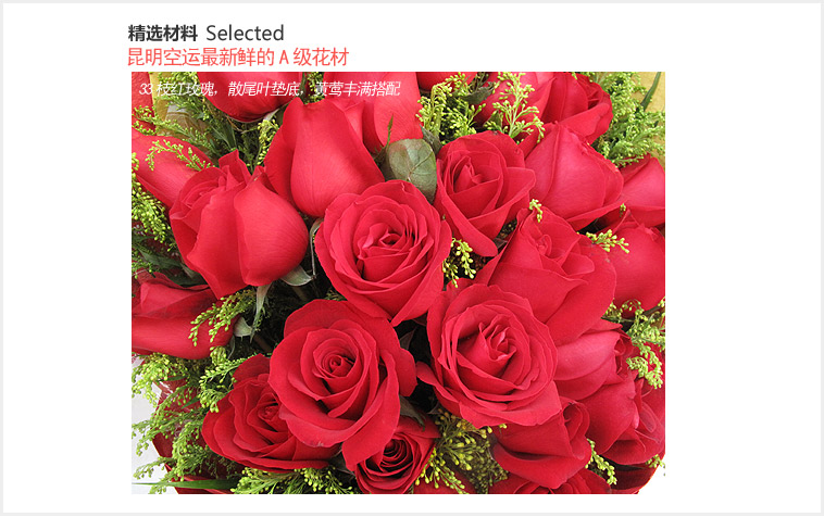 33枝红玫瑰,散尾叶垫底,黄莺丰满搭配。
