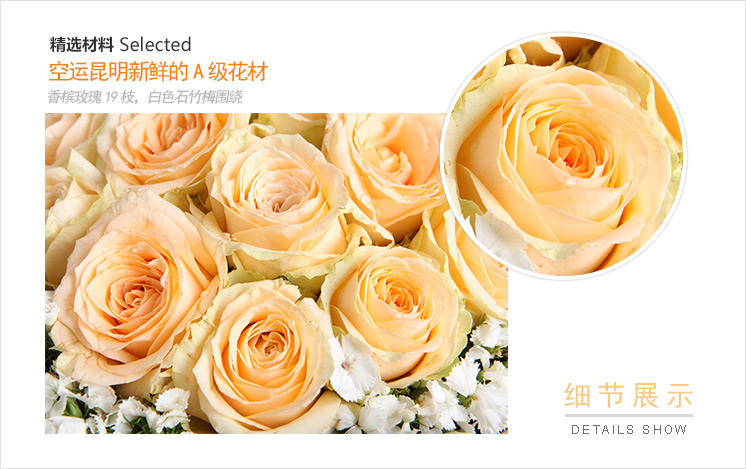 [98%好评率,热销推荐] 19枝香槟玫瑰