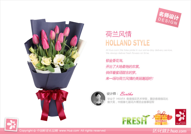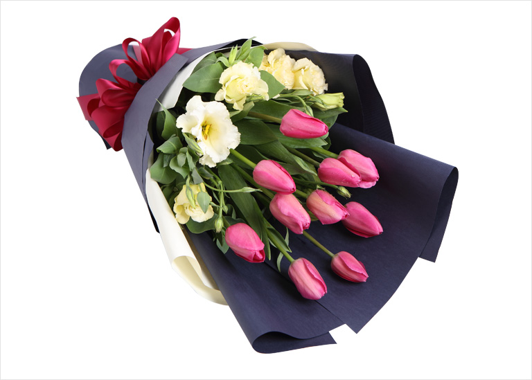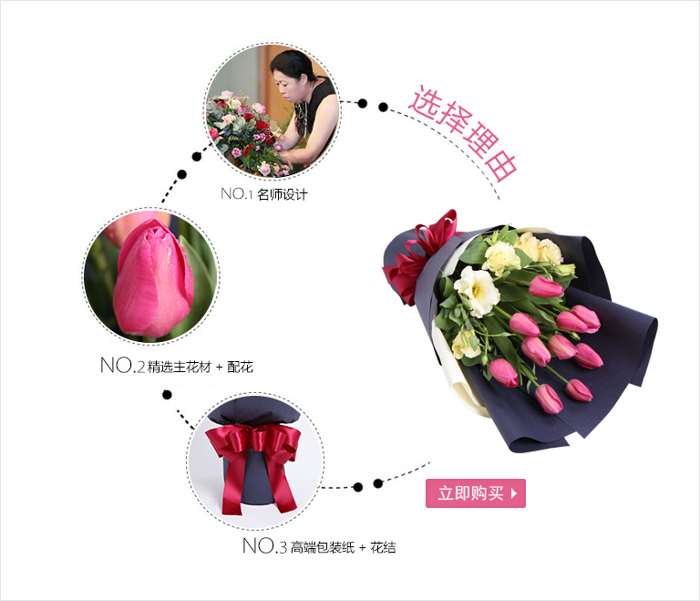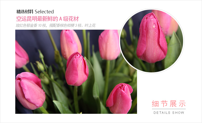 中小城市请提前一天订购或订购前咨询;因郁金香花期的原因,只在12月20日~4月10日期间提供此款鲜花的配送。