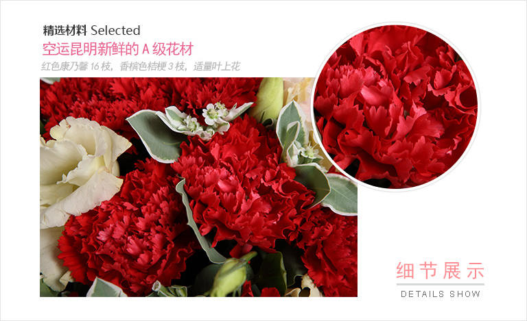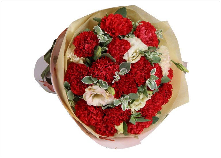 [精选A级空运鲜花] 红色康乃馨16枝,香槟色桔梗3枝