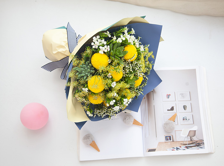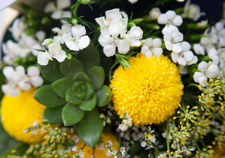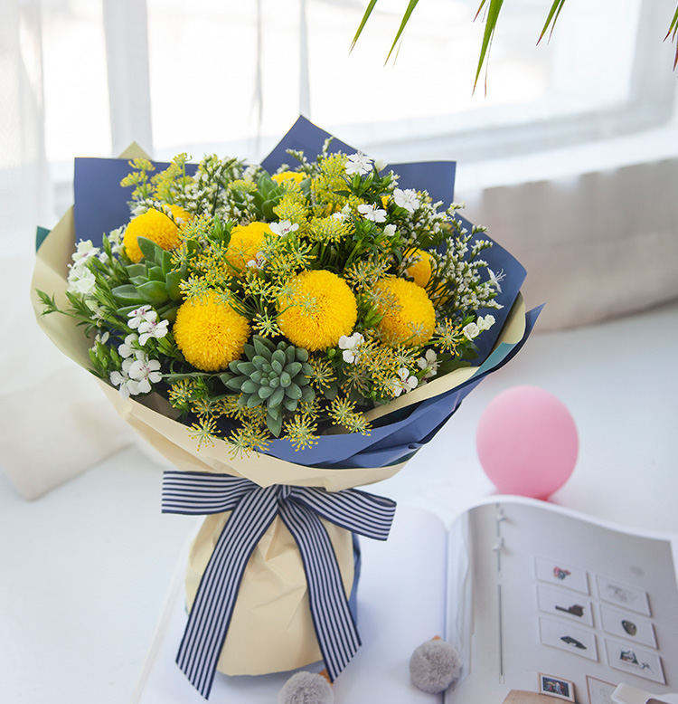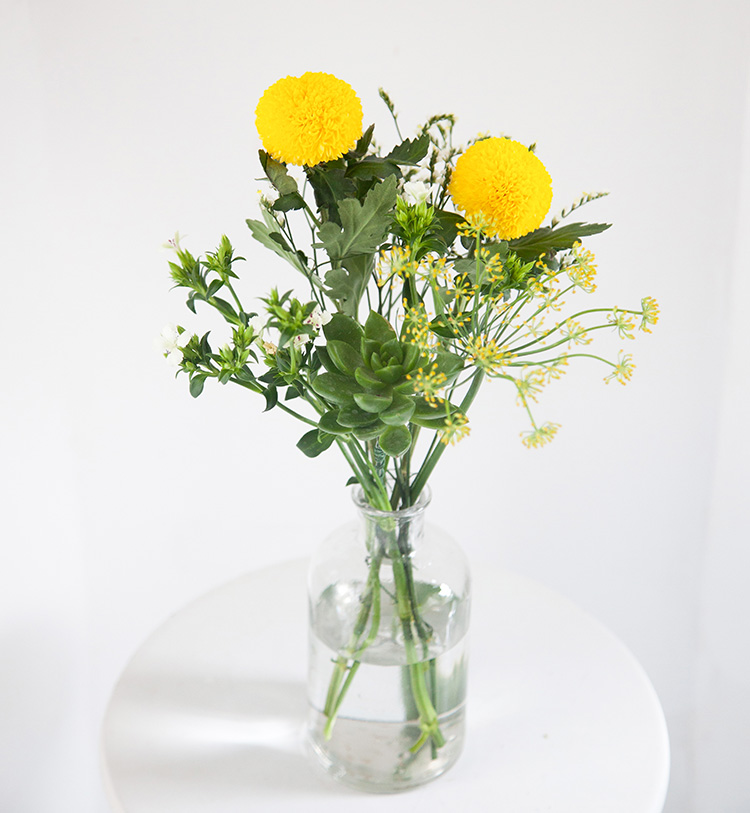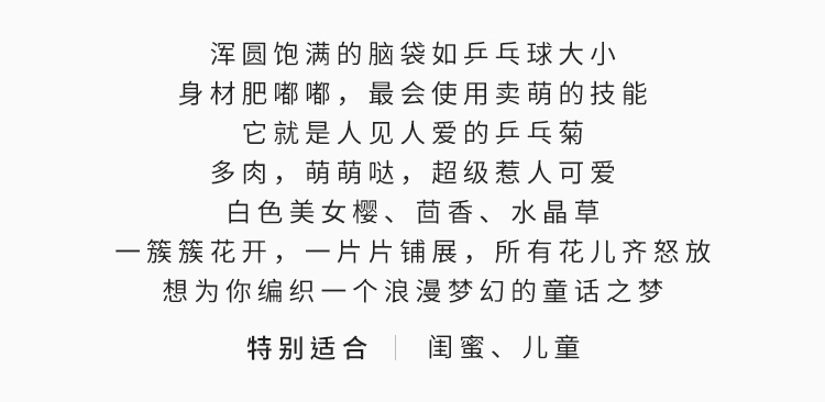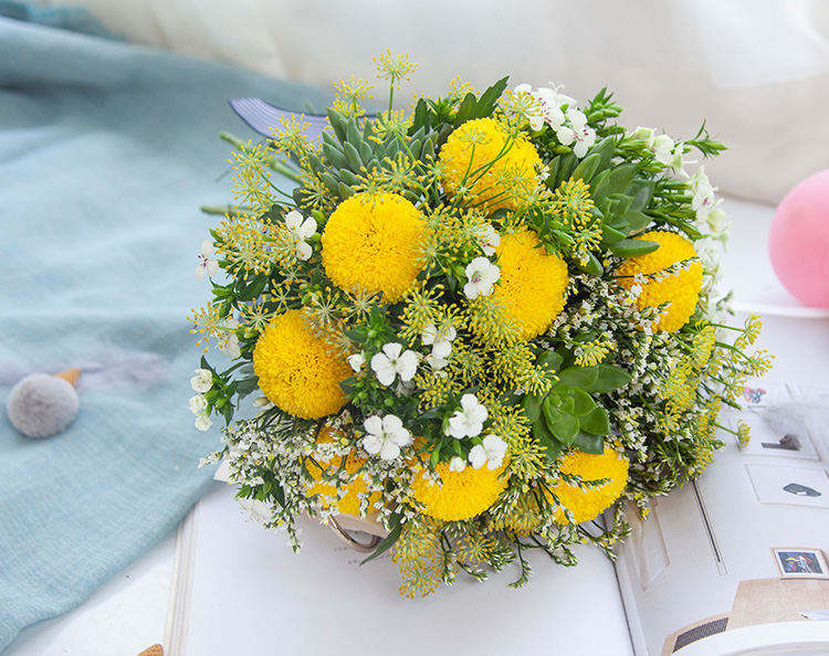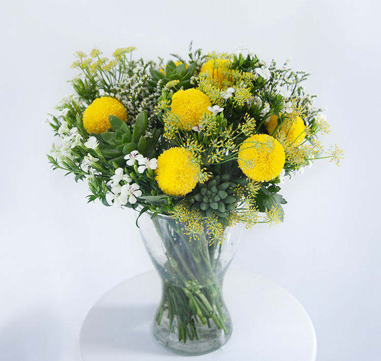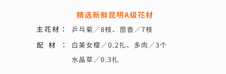 乒乓菊8枝、茴香7枝、白美女樱0.2扎、多肉3个、水晶草0.3扎