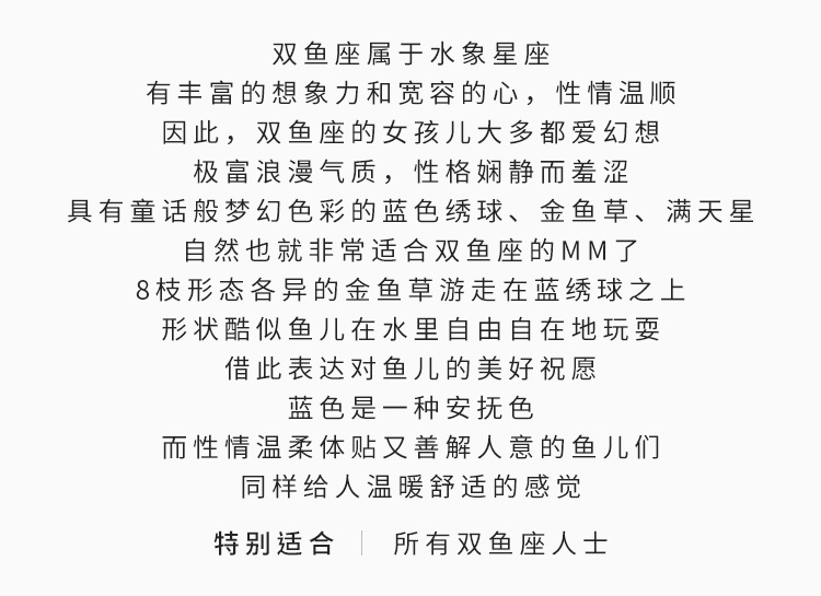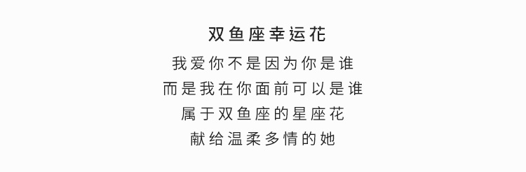 我爱你不是因为你是谁,而是我在你面前可以是谁。属于双鱼座的星座花,献给温柔多情的她。